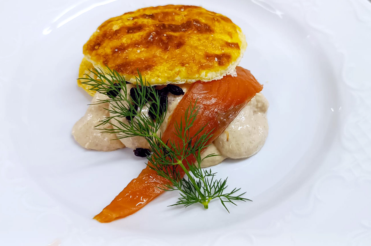 Praline of Cod, Fennel-Puree, Leek Velouté